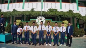 SMPIT Al-Multazam 2 kembali melaksanakan kegiatan rutin upacara bendera hari Senin di lapangan sekolah dengan suasana yang tertib dan khidmat. Petugas upacara kali ini dipercayakan kepada kelas 8C di bawah bimbingan wali kelas Ibu Siti Masitoh, S.Pd. Seluruh petugas menjalankan tugasnya dengan penuh tanggung jawab, mulai dari pengibaran bendera, pembacaan teks Pancasila, hingga doa penutup. Kedisiplinan dan kekompakan para siswa tampak begitu baik, mencerminkan semangat nasionalisme dan karakter Islami yang menjadi ciri khas sekolah.